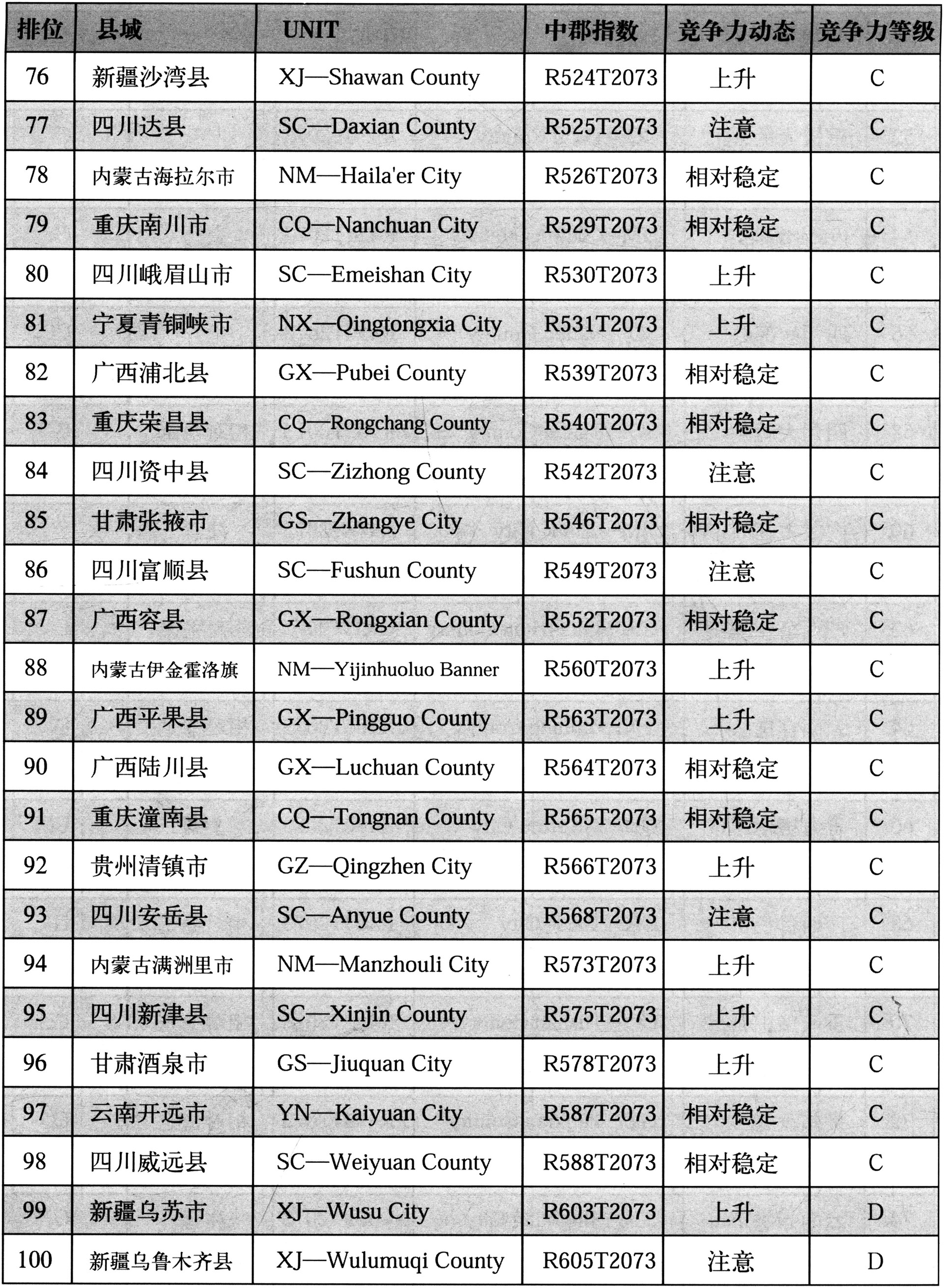 第一届中国西部百强县(市)