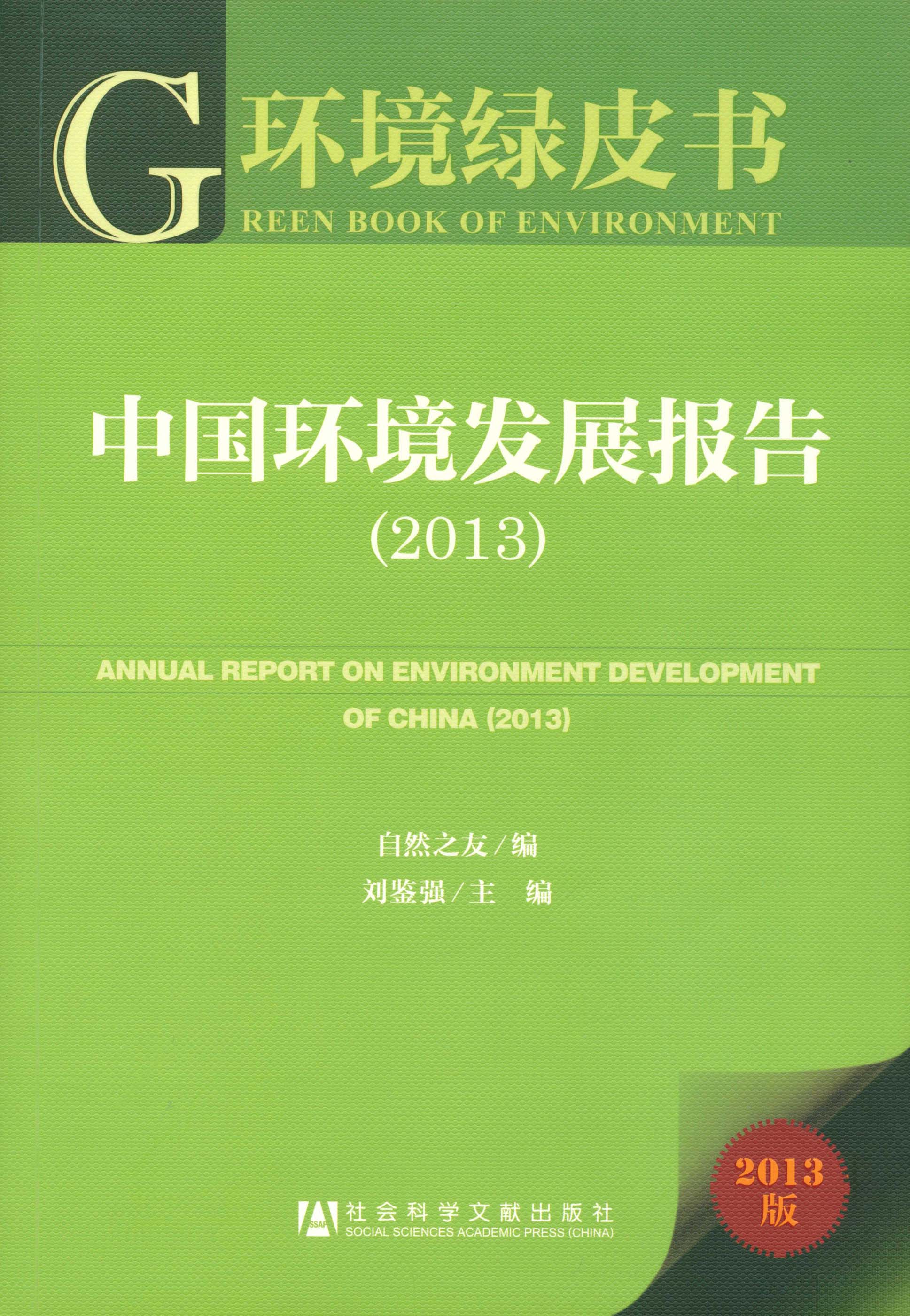 中国环境绿皮书《中国环境发展报告(2013)》是由民间环境保护组织“自然之友”编撰的中国环境年度报告,由刘鉴强任主编,一批优秀的专家、学者、环保工作者、公益组织骨干和媒体人士等通力协作而成。 2012年,针对工业污染、环境健康问题的公众性事件接连不断,成为全社会关注的热点。一方面,民间抗争的方式激进化,利益冲突更加尖锐;另一方面,地方政府的反应更加迅速。这些变化预示着知识分子、环保组织长期致力于公共教育的努力与城市居民、农村群众自发的以维权和求偿为主要目的群体性抗争汇合,向政策倡导等长效的改变发展。 2012年层出不穷的跨界水污染和水资源争夺,昭示着水危机不仅仅是环境危机,更是社会与政治危机。水危机已经引发了广泛反思,让我们重新认识规划、战略和发展模式,并且在新的切面上重新构造政治议题和政治战线。 2012年,中国的生态环境继续面临巨大挑战。长江上游大批水电工程匆忙上马。在“跑马圈水”的背后,流域地质、生态、水资源可持续利用等风险若隐若现。保护地本应是全社会公共的而非地方或部门的财富,属于保护性和公益性而非开发性和经济利用性的资源。但在现实中,我们不断看到,这种全社会的公共财富和保护性、公益性资源,不断被地方政府和外来资本视为利益集团的摇钱树,它们置环境与法律法规于不管不顾,大肆圈地圈水,强行 开发 。 2012年,连续发生多起重金属污染事件,对民众的健康造成威胁,引起了舆论的广泛关注。城市扩张中的棕色地块——工业污染地只是毒地肆虐的一角,国内还有更多尚未明确的污染场地,这些都给迅速推进的城市化进程埋下了难以根除的隐患。 从2011年的灰霾天气开始,公众逐渐关注PM2.5的数值,持续的灰霾天气,聚焦了前所未有的公众关注和社会共识。通过公众及民间环保组织的努力,全国已陆续有50多个城市开始公布PM2.5的数值,这也是公民主动参与和推动环境保护的成功。空气议题促进了公众、媒体、专家和政府部门对空气污染以及宜采取紧急行动的广泛共识。 2012年1月1日起已经开始实施的《民事诉讼法》首次将环境公益诉讼写入法律,被认为是为环境公益诉讼开启了一扇大门。而有着“环境保护母法”之称的《环境保护法》的修改则饱受争议,甚至引发人们“倒退几十年”的恶评。为了阻止这部法律“上会”,国内著名的环境法学家专门致信吴邦国同志和全国人大常委会法制工作委员会,指出《环境保护法》征求意见稿存在硬伤,建议全国人大常委会暂缓审议“征求意见稿”。 环境绿皮书重视从公共利益的视角记录、审视和思考中国环境状况,主要以数据和事实说话,强调实证性、真实性、专业性,从而树立权威性。