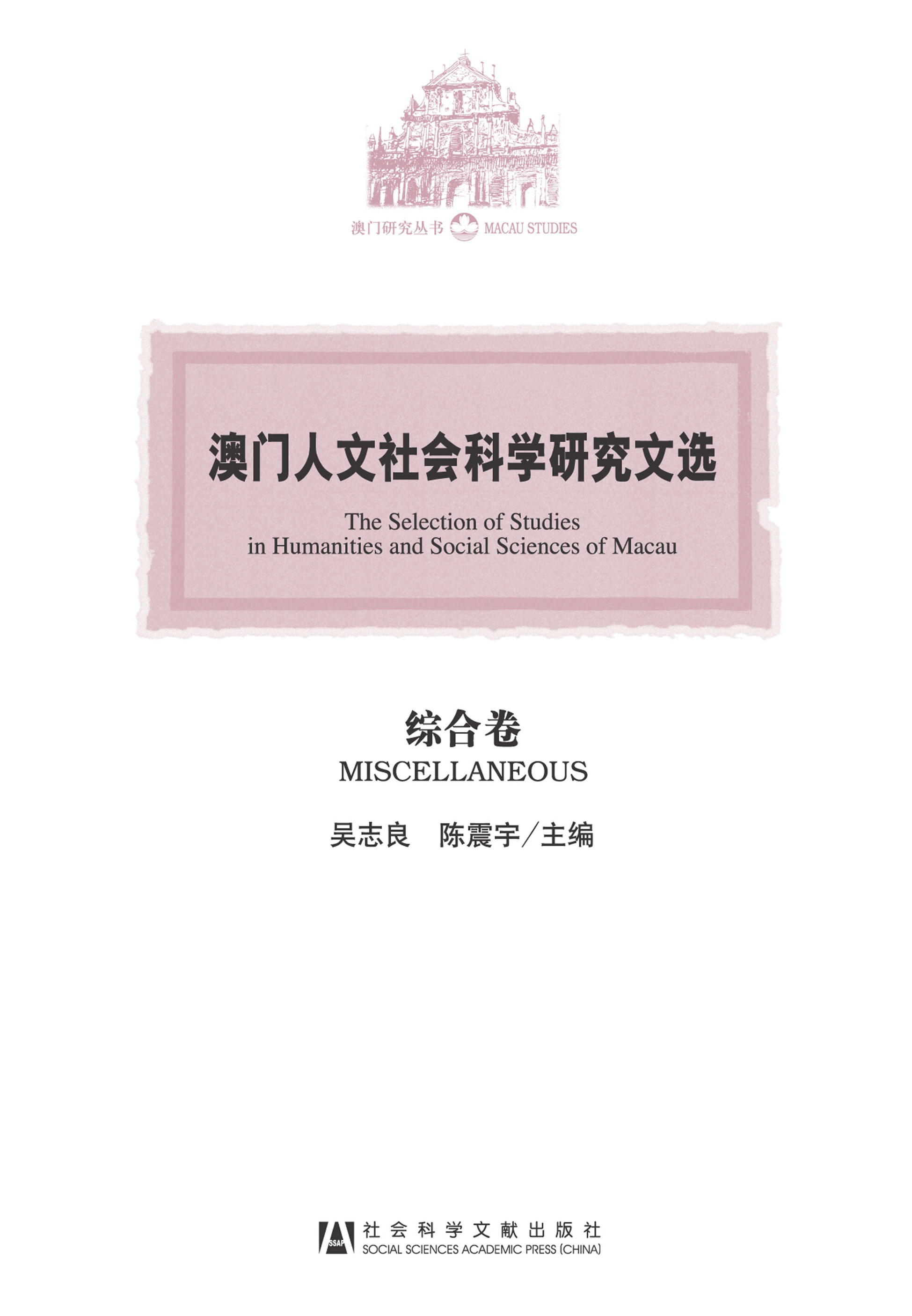 | 英 文 名: | The Selection of Studies in Humanities and Social Sciences of Macau·MISCELLANEOUS |